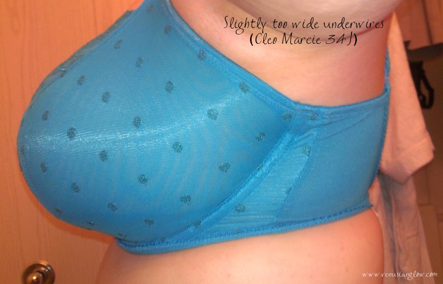 "This bra is one of the best that I have, and the wires encase my breast root pretty well, although you can see in the naked side shot that there's still a bit behind the wire. You can also see how my root is pretty flat on the bottom and angles up a bit towards the side. So far Elomi bras are the only ones I've tried that have fit well (and made me feel good about myself), although I do have one Cleo that fits okay, although I can't wear it for more than about 8 hours before it starts becoming uncomfortable."